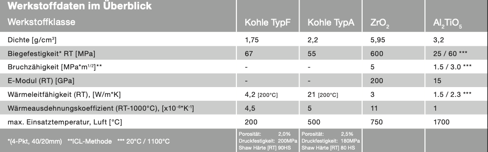 Die überzeugensten Vorteile keramischer Werkstoffe bestehen in ihrer hohe Härte, ihrer hohen Temperaturbeständigkeit und der sehr guten Säure- und Laugenbeständigkeit.
